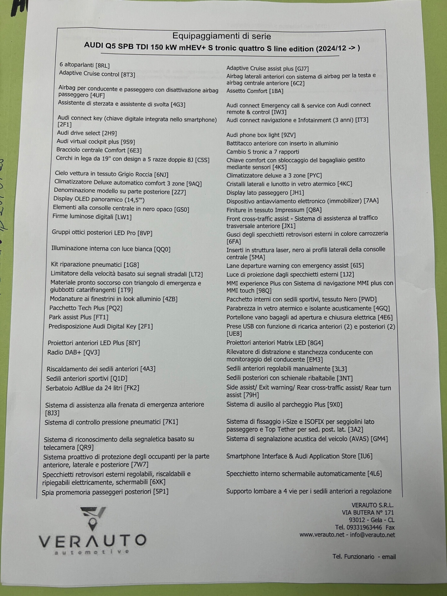 | Versione | Q5 SPB TDI 150 kW mHEV S tronic quattro S line edition |