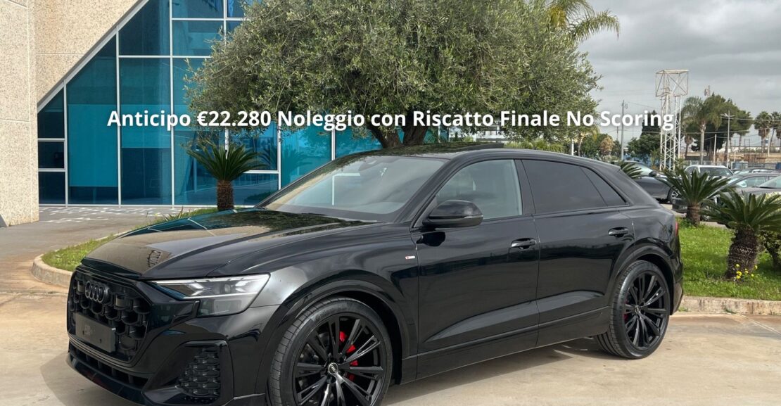 Audi Q8 50 TDI 286Cv S-line edition quattro tiptronic – Nuova Pronta Consegna – Iva Esposta – Proponiamo Anticipo €22.280 ic + Deposito Cauzionale – noleggio con riscatto finale – no scoring – in 35 rate da €2.174 ic, riscatto finale €23.680 ic – compreso bollo, Superbollo e assicurazione incendio e furto – senza richiesta di garanzie creditizie – persone fisiche – società di nuova costituzione