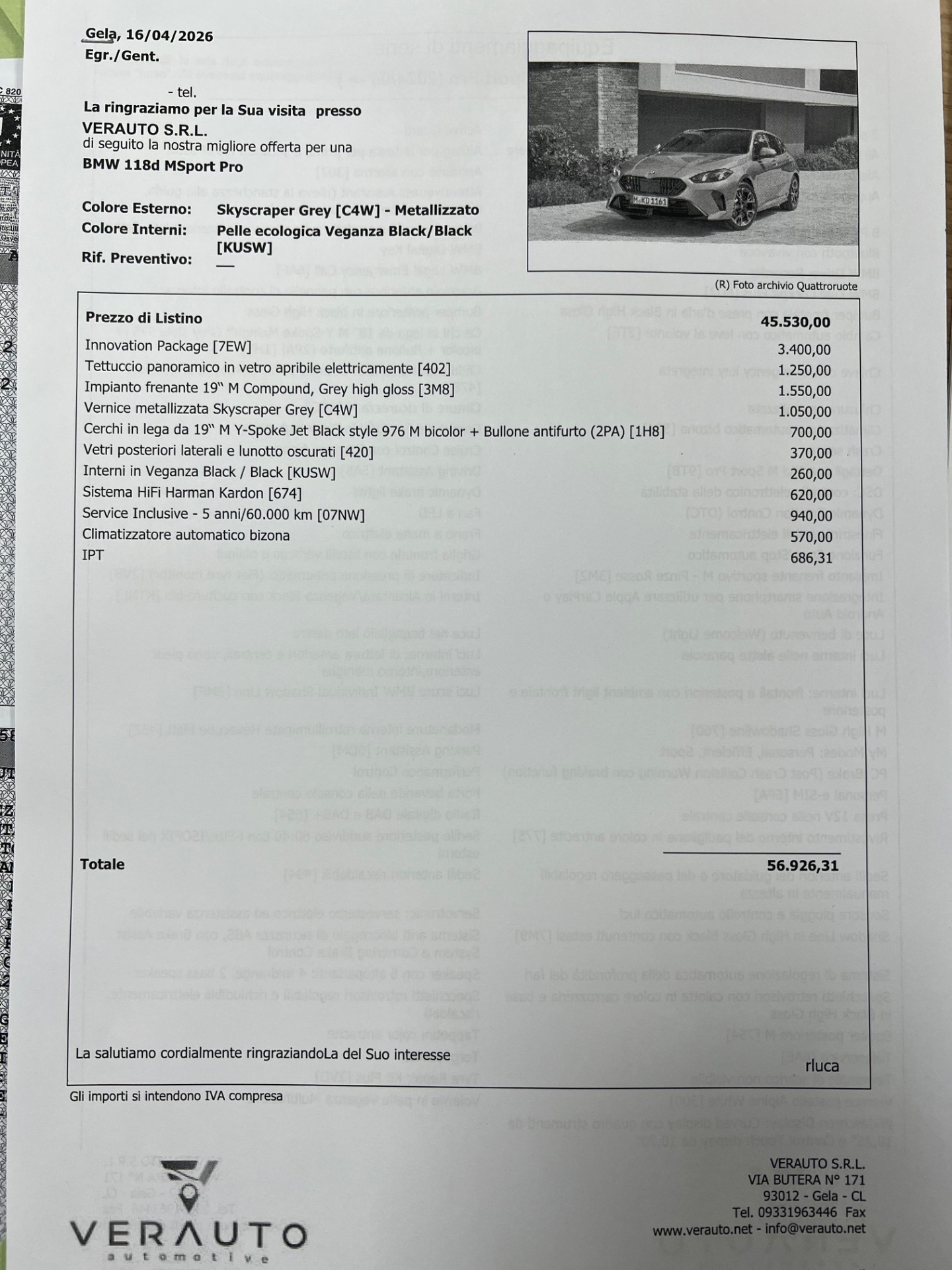 BMW 118d MSport Pro auto – Nuova Km0 10/2025 – Listino €56.926 – Scontata €42.900 – IVA Esposta – possibilità di finanziamento, leasing, inoltre proponiamo noleggio con riscatto finale con anticipo pari al 30%, no scoring senza credenziali bancarie e anche a chi ha avuto problemi al crif