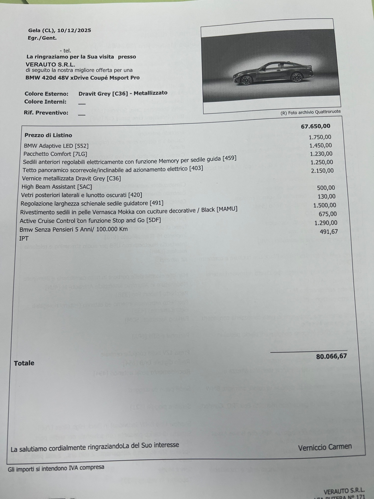 BMW 420 d Coupe mhev 48V xdrive MSport Pro auto – nuova km0 10/2025 – listino €80.066 – scontata €64.900 – possibilità finanziamento, leasing, inoltre proponiamo noleggio con riscatto finale con anticipo pari al 30%, no scoring senza credenziali bancarie e anche a chi avuto problemi al crif