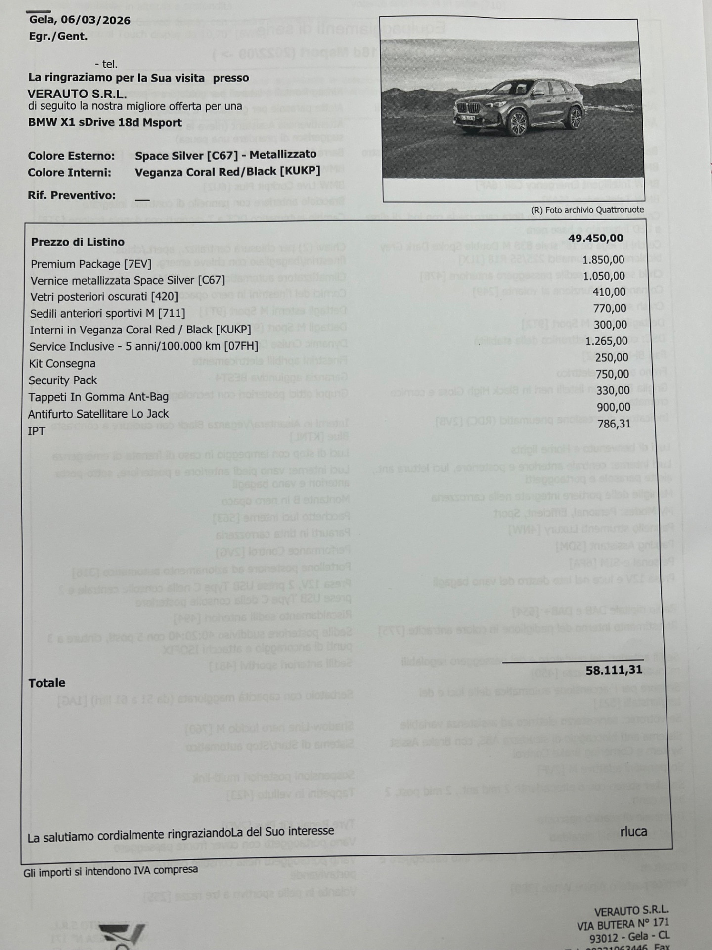 BMW X1 sDrive 18d Msport – Nuova 2026 – Listino €58.100 – Scontata €49.900 – IVA Esposta – possibilità finanziamento, leasing, inoltre proponiamo noleggio con riscatto finale con anticipo pari al 30%, no scoring senza credenziali bancarie e anche a chi avuto problemi al crif
