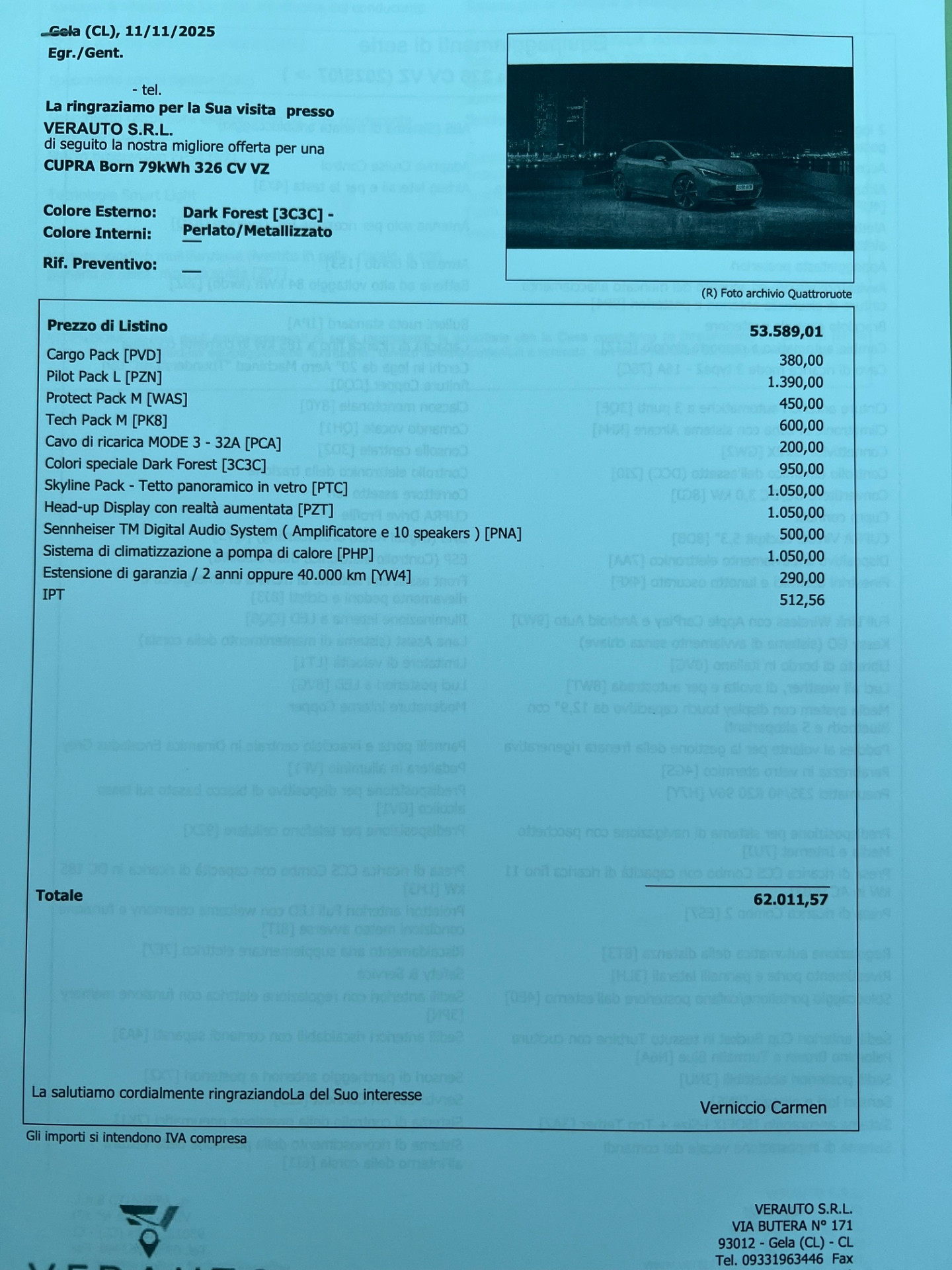 CUPRA Born VZ – potenza 326cv – nuova km0 10/2024 – listino €62.011 – scontata €38.700 – capacità batteria 79KW – possibilità finanziamento, leasing, inoltre proponiamo noleggio con riscatto finale con anticipo pari al 30%, no scoring senza credenziali bancarie e anche a chi avuto problemi al crif