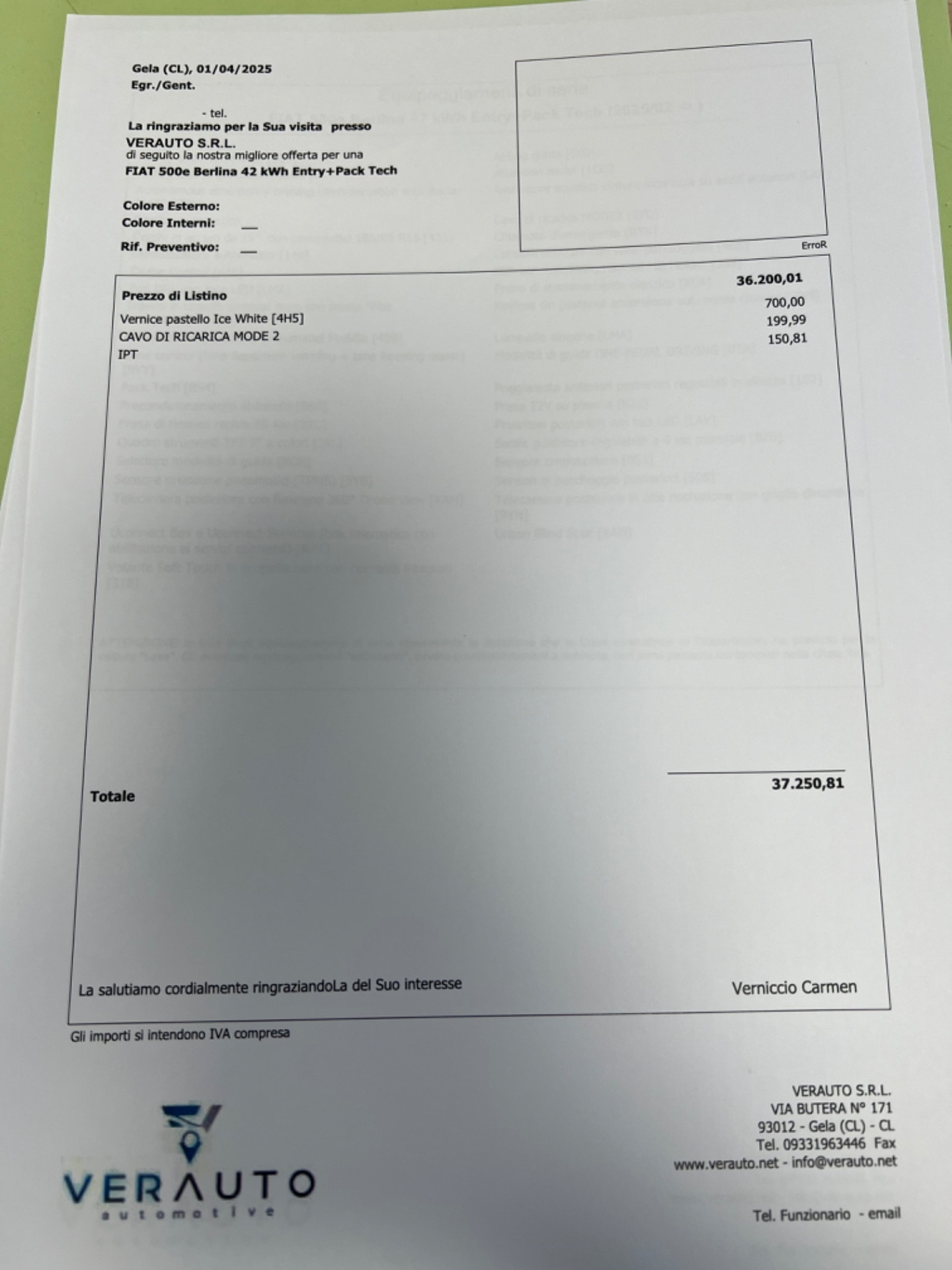 Fiat 500e Bev – nuova km0 01/2025 – listino €37.250 – scontata €21.900 – iva esposta – possibilità finanziamento, leasing, inoltre proponiamo noleggio con riscatto finale con anticipo pari al 30%, no scoring senza credenziali bancarie e anche a chi avuto problemi al crif