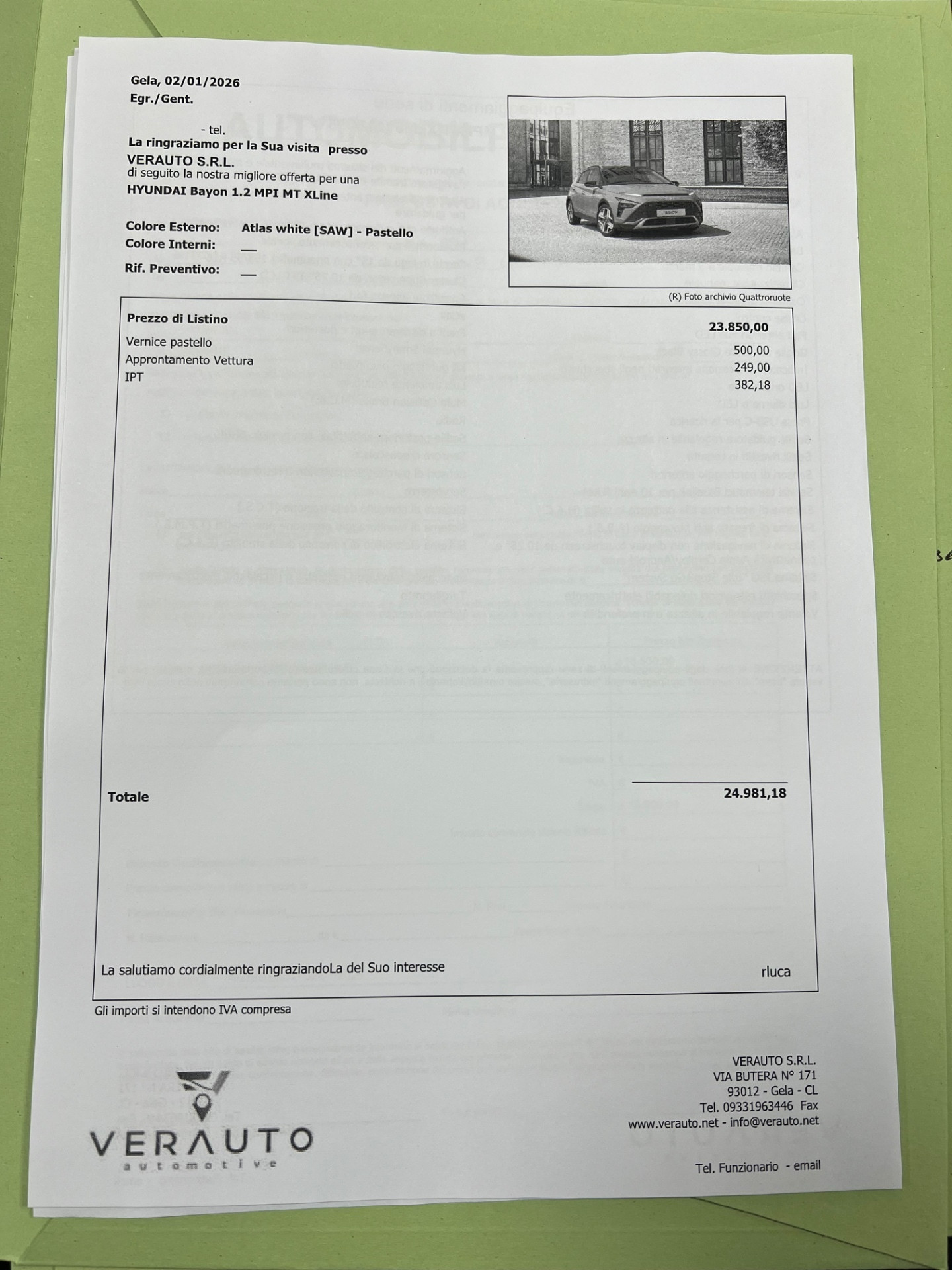 Hyundai BAYON 1.2 mpi Xline mt – Anno 12/2025 – Nuova km0 – Prezzo di listino €24.981 – Prezzo scontato €18.600 – iva esposta – possibilità di finanziamento,leasing,inoltre proponiamo noleggio con riscatto finale con anticipo pari al 30% no scoring senza credenziali bancarie anche a chi ha avuto problemi al crif