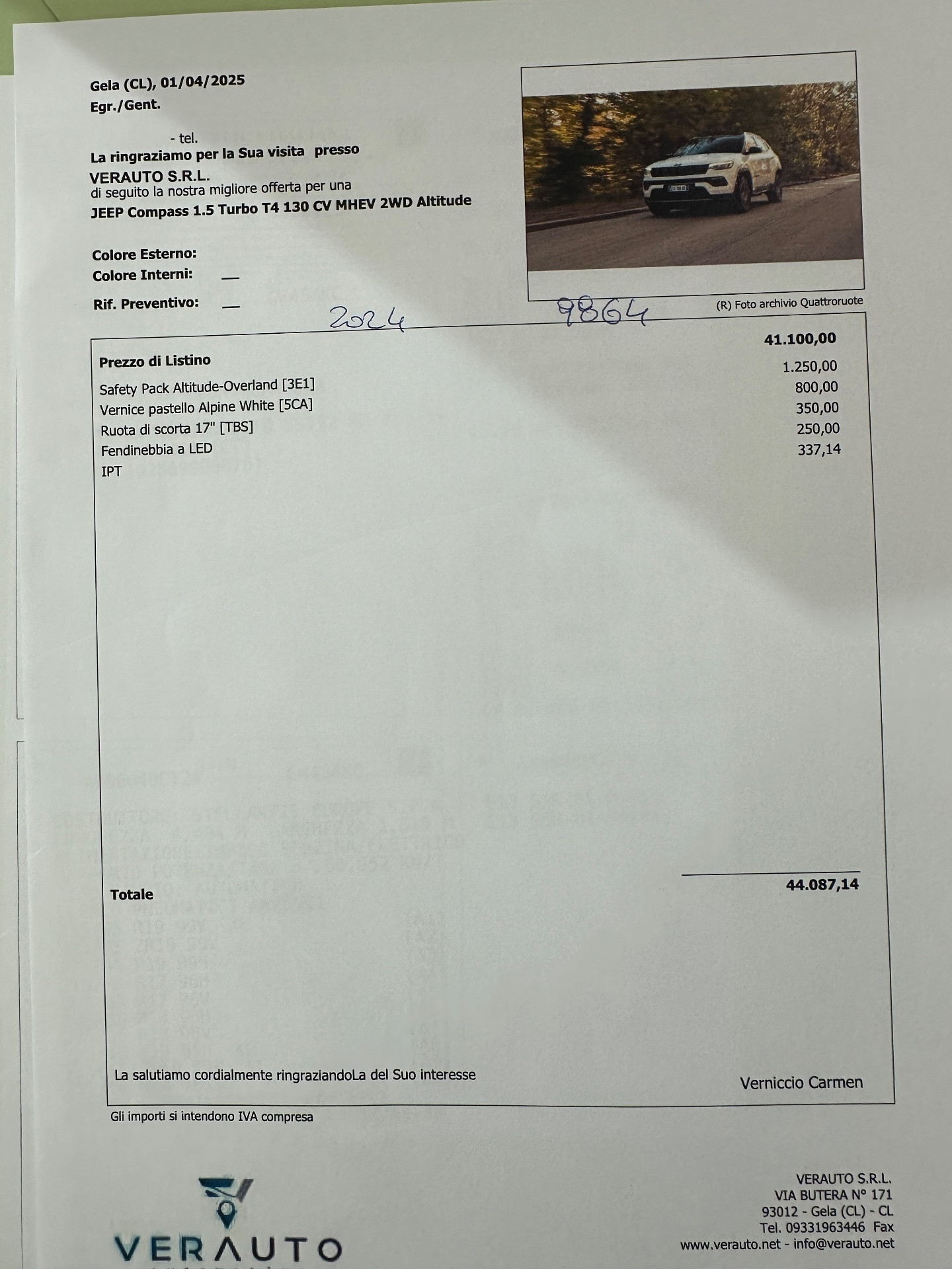 SUPER OFFERTA T-Stock – Jeep Compass 1.5 turbo t4 mhev Altitude 2wd 130cv dct – nuova km0 07/2024 – listino €44.080 – scontata €29.900 – iva esposta – possibilità finanziamento, leasing, inoltre proponiamo noleggio con riscatto finale con anticipo pari al 30%, no scoring senza credenziali bancarie e anche a chi avuto problemi al crif